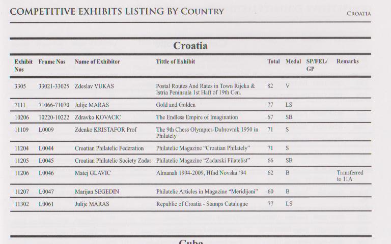 izložak poštanske povijesti" - izlaganje međunarodnog FIP suca
